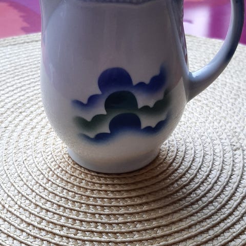 Kannun tilavuus n. 0.5 l ja kulho "murokulho" kokoa ( korkeus n. 7.8 cm ja halkaisija n. 10 cm (yläosa)