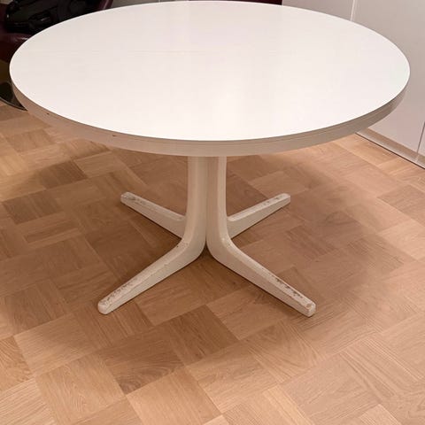 Myydään muuton vuoksi Ikean pyöreä pöytä sekä 3 kpl muistaakseni Sotkasta ostettuja tuoleja. Käytöstä jo jonkin verran jälkiä on.