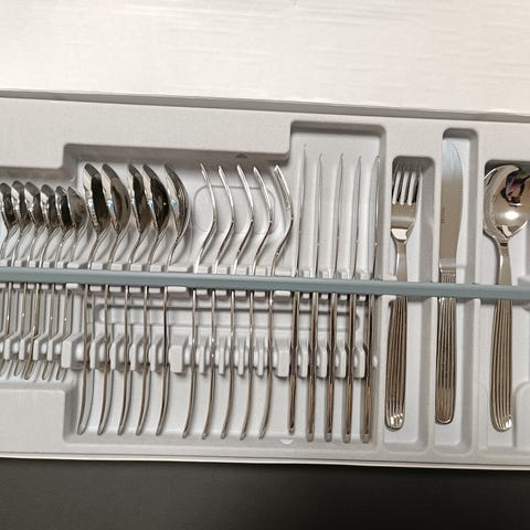 Uusi Iittala Scandia aterinsetti 24 osaa: 6 x haarukka, veitsi, lusikka ja kahvilusikka.