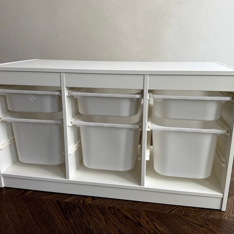Myydään Ikean Trofast säilytyskokonaisuus. Kuvassa näkyvät laatikot tulevat mukana.