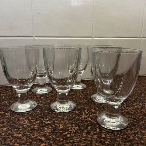 Myyntiin kuvien mukaiset Vernat. Lasit ovat ehjät ja suht siistit, pientä naarmua ja vähän sameutta käytön jäljiltä. Ovat kuitenkin arkikäyttöön oikein passelit. Saa tulla katsomaan ennen ostopäätöstä. Hinta kaikille yht. 15 eur.