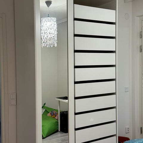 3kpl kuvan mukaista ikea pax vaatekaappia. Runko valkoinen ja ovi valkoinen korkeakiilto. Kunto on hyvä. Hinta per kappale. Myydään ensisijaisesti settinä.