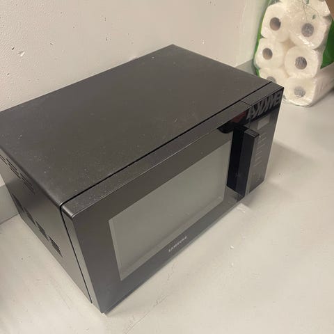 Samsungin keraaminen, tilava mikroaaltouuni myytävänä muuton vuoksi. Uudenveroinen. Mukana lautasellinen.