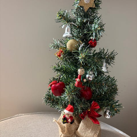 Myydään valkoinen tekojoulukuusi, sekä joulukoristeet. Mukaan tulee kuusen jalka. Kuusen saa kolmeen osaan jonka ansiosta sen saa helposti kasaan ja varastoon säilöön.
