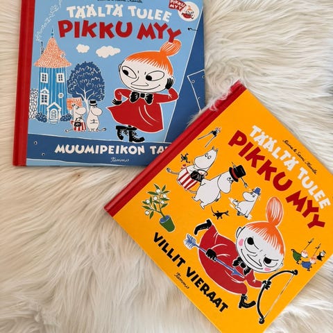 Kaksi taaperoiden kirjaa, Muumi ja Pikku Myy, vuodenajat sekä Pikku Papun ystävät. Kirjat ovat uusina jääneet käyttämättä, unohtuneet kaappiin. Eli kunnoltaan ovat uusia ja täysin käyttämättömät. Sopii vaikkapa lahjaksi. 6€ kpl tai molemmat kerralla yht. 10€.