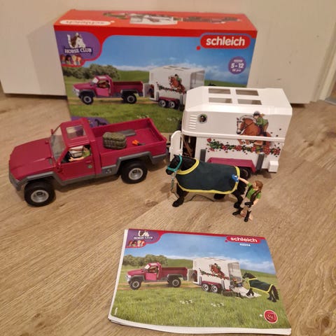 Schleich auto ja traileri. Kaikki setin osat tallessa kuten kuvissa näkyy.