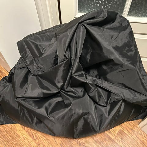 Musta säkkituoli. Kunto on ihan hyvä.