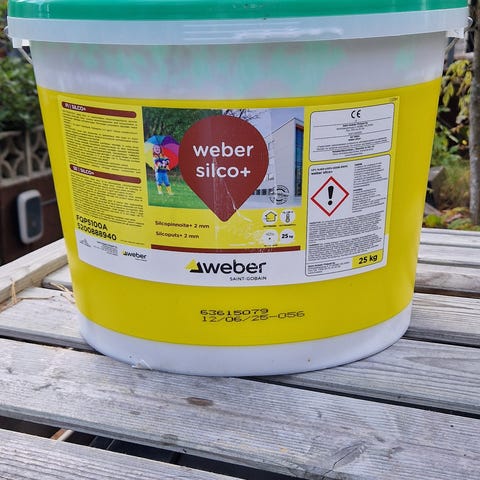 25kg silcomaaleja. Nämä on jo pitkään hallissa lojuneet kun ylimääräiseksi jääneet. Vaikuttaisi sekottuvan vielä kuitenkin hyvin, mutta perävalotakuun näille annan. Hintakin sen mukainen.