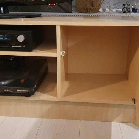 Huomenna illalla menee roskiin tämä TV-taso. Nyt se odottaa rappukäytävässä jos joku haluaisi vielä ottaa käyttöön.