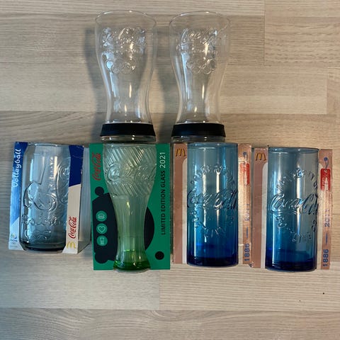 13kpl Cola laseja eri vuosilta pois muuton tieltä, kaikki kerralla.