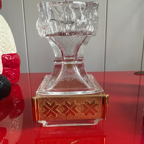 Täysin ehjä ja hieno Riihimäen lasin kynttilänjalka.Voidaan lähettää mutta mielellään nouto.