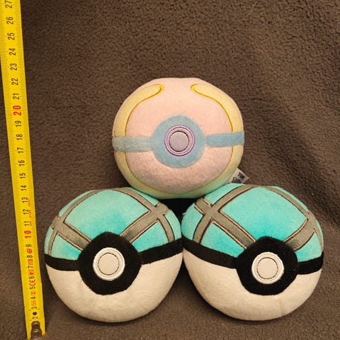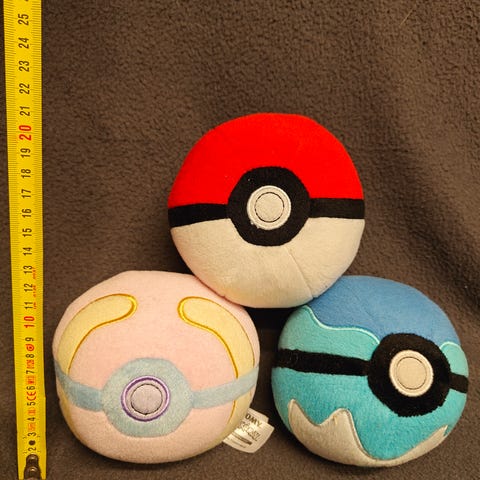 Nämä Pokémon Pokepallot -pehmolelut ovat alkuperäisiä ja erittäin hyväkuntoisia. Säilytetty huolellisesti.