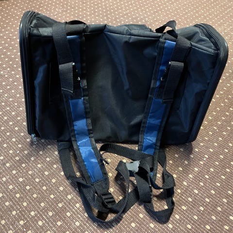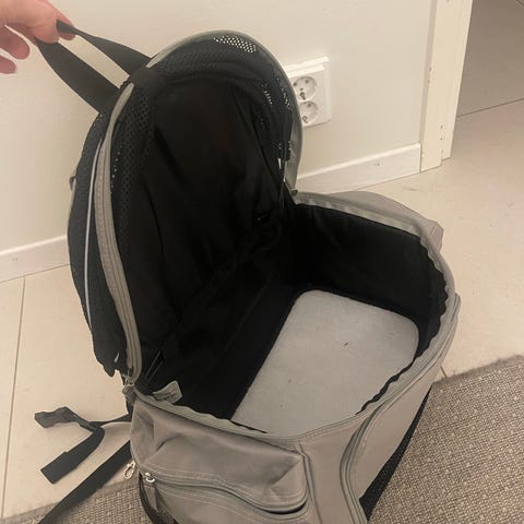 Monitoiminen selkäreppu koiralle vaikka koiranäyttelyyn. Repun alaosaan saa talteen kaikkea trimmaus ym. tavaraa. On verkollisia, vetoketjullisia luukkuja.