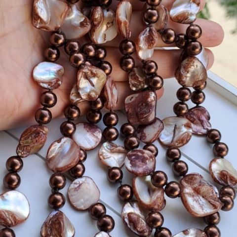 Hyväkuntoinen vintage pitkä ja runsas etanoista tehty simpukankuorikaulakoru (englanniksi snail shell necklace tai shell lei ) riipus koru ja en tiedä kenen valmistama / suunnittelema
