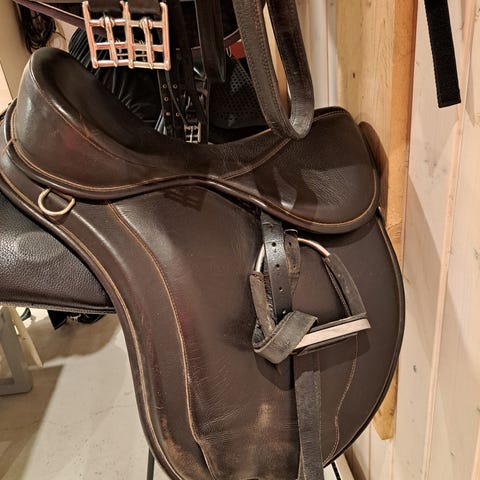 Siistikuntoinen satula, vastinhihnat hyvässä kunnossa.