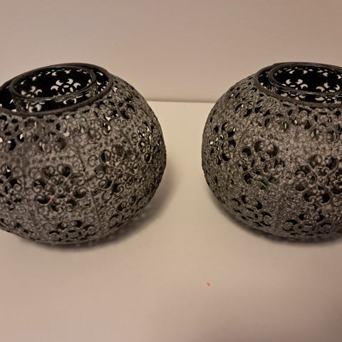 Metallinen teline. Kukkakoristeet joka laidalla. Koko n. 13 x 7 x 7 cm. Kupit ehyet, ei steariinia. Tosi siisti ehyt. Hyvin vähän käytönjälkiä. Pinkki. Lähetys toridiili, s-paketti, tai nouto.