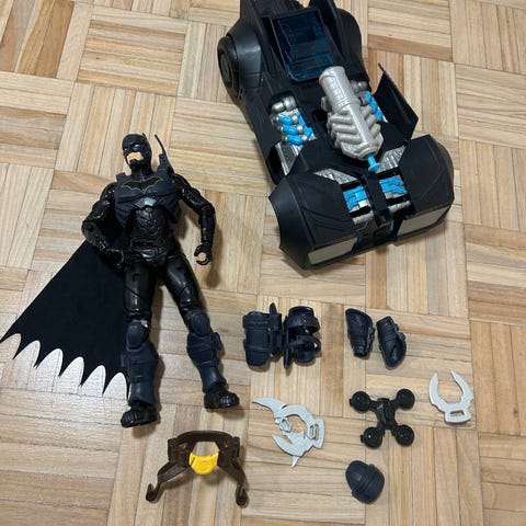 - irrotettava erillinen moottoripyörä, siivet Batmanin selkään