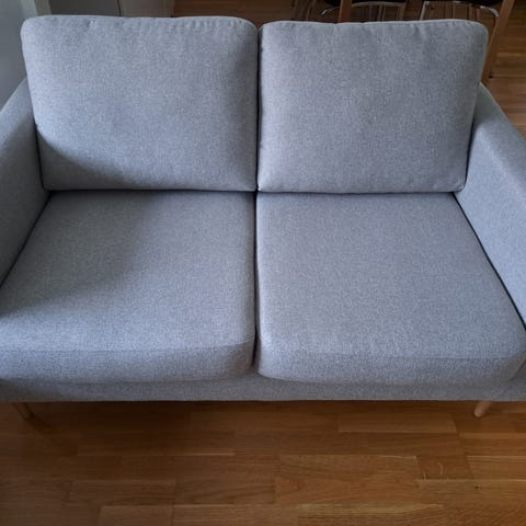 Myynnissä hyvin selkeälinjainen 2,5:n istuttava sohva. Sohvan runko ja jouset ovat ehjät. Suhteellisen sirojen käsinojien ansiosta istuin leveys on saatu maksimoitua. Istuin ja selkätyynyjen kankaat ovat irrotettavissa pesuun. Korkeat jalat mahdollistavat helpon puhtaanapidon sohvan alta. Kankaan väri vaalean ruskea / rusehtavan grayge. Huomioitavaa sohvan kunnossa: Sohvan puujaloissa imuroinnista tulleita pieniä käytönjälkiä. Sohvan hinta: 219e ALENNETTU HINTA: 197e.