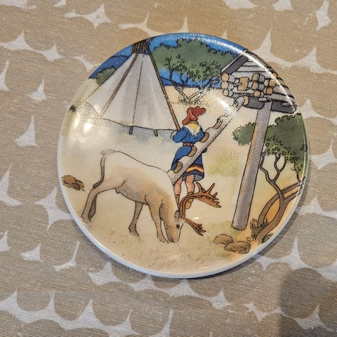 Arabia Finland lappi seinätaulu taulu lautanen retro vintage keräily koriste poro lapland sisustus A Alariesto kulttuuri taiteilija taulut tauluja
