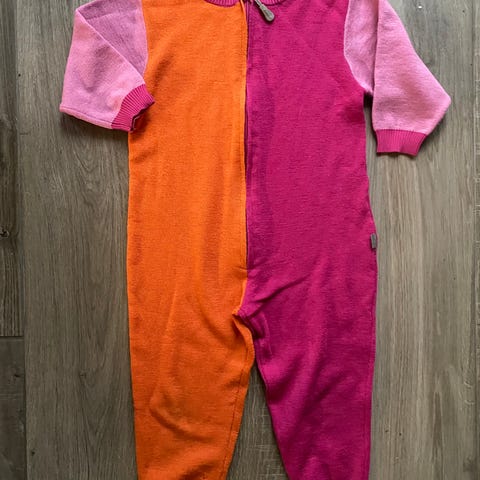 Päällinen villaa, vuori puuvillaa. Siistissä kunnossa, mutta kengistä tullut lahkeisiin reiät villaan, mutta vuori on ehjä.