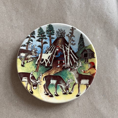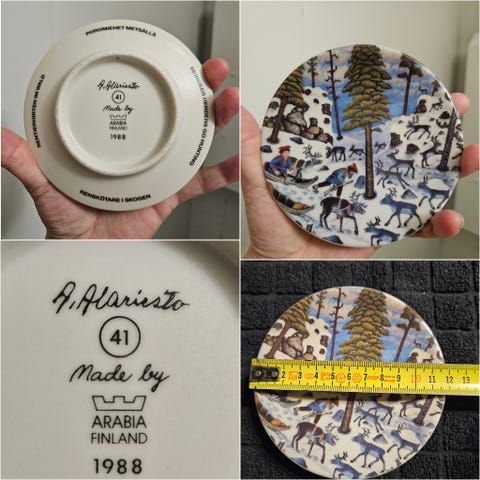 Arabia Finland lappi seinätaulu taulu lautanen retro vintage keräily koriste poro lapland sisustus A Alariesto kulttuuri taiteilija taulut tauluja