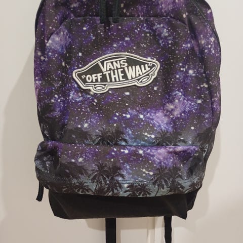 Vans kangasreppu unisex-mallina, mustassa värissä. Reppu soveltuu monipuoliseen käyttöön ja sisältää tilavan sisätilan ja etutaskun. Materiaalina kestävä kangas. Muuten hyvässä kunnossa, mutta pienessä sivu taskussa oli valmistus virhe. Sitä on paikattu kangas tarralla, kuvissa näkyy. Sauma oli revennyt ja vielä on vähän auki. Voi paikata. On vielä hyvin käytettävissä ja on kestänyt vuosien käytön.🖤Hihnat on säädettävissä. Vihreillä yksityiskohdilla olevat vetimet ja avain rengas edessä.
