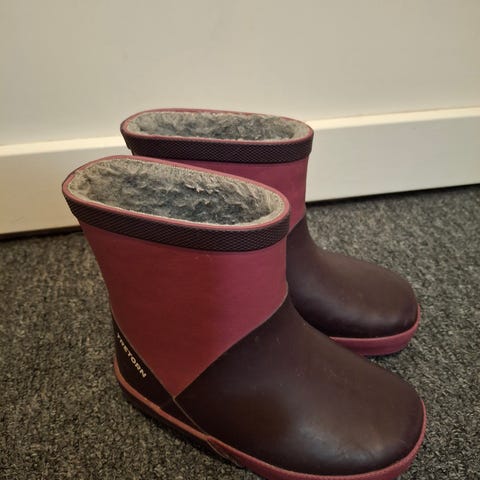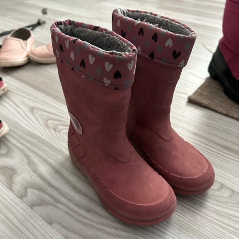 Käytetyt, mutta ehjät talvikumisaappaat koossa 26. Näissä on vilkkivalot pohjissa, mutta valitettavasti valo toimii vain toisessa kengässä.
