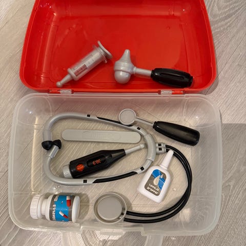 Lääkärinlaukku Simba Toys suuri tarvikkeineen lääkärileikkeihin.