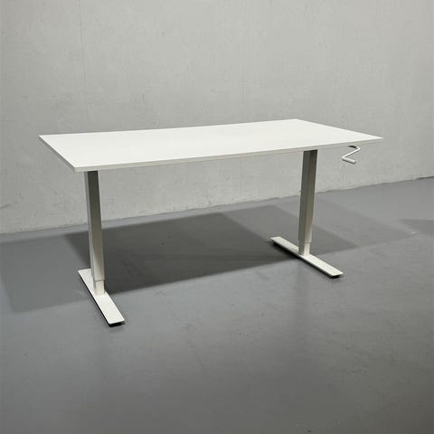 Korkeussäädettävä Ikean työpöytä Skarsta 160cm x 80cm tasolla, jossa veivillä korkeussäätö manuaalisesti. 70-120cm mahdollisuus, joten sopii pidemmäkkin tyypille. Ei johtoja tiellä, veivin saa piiloon pöydän alle. Mukana Ikea Malkholm tuötuoli jossa kangasverhoilu ja korkeudensäätö. Verhoilussa kulumaa.Kysy asiakaspalvelustamme lisää toimistokalusteista.