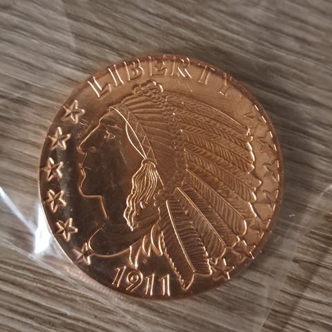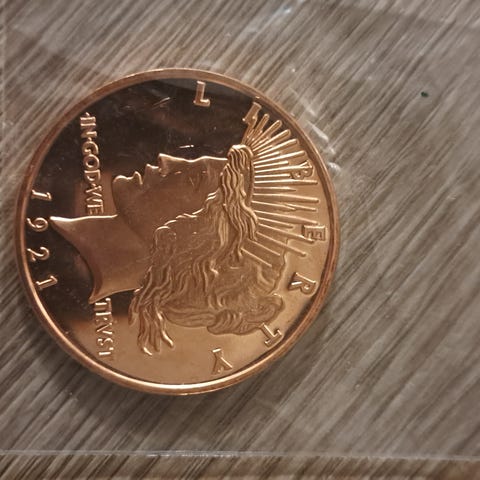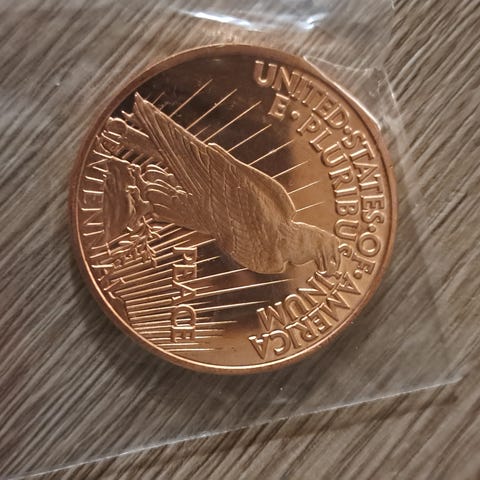 Erittäin hieno kupari .999 Fine USA:sta, 1 AVDP oz kuparikolikko. Kolikko on valmistettu puhtaasta kuparista ja esittää USA:n vaakunan ja Liberty-hahmon. Sopii keräilyyn tai sijoituskohteeksi.