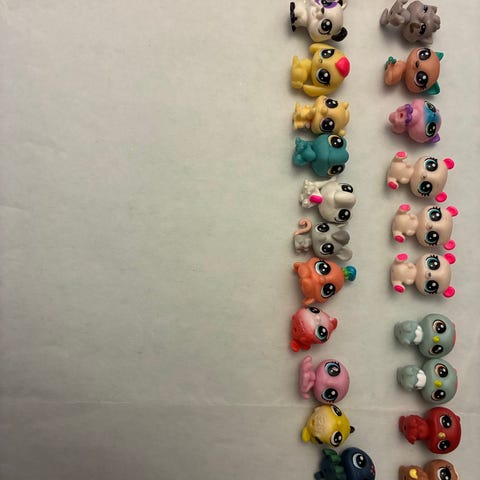 Littlest Pet Shop lasten lelut, kokoelma erilaisia pieniä eläinhahmoja eri väreissä ja muodoissa. Lelut soveltuvat lasten leikkeihin ja keräilyyn. kaikki yht 15€