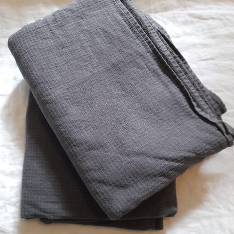 Hyväkuntoiset siniharmaat pyyhkeet. Kylpypyyhkeet 70x140 (2) ja käsipyyhkeet 30x50cm (4). Yhteishinta.