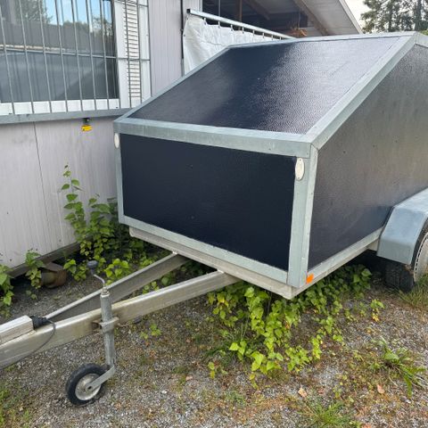 CS265-L/high. Keskiakseli perävaunu. Kippitoiminto , korkeat laidat, nokkapyörä , lukittava kuomu, aisalukko . Kärry käyttott. 06.2019 silti lähes käyttämätön. Myydään annettujen tarjousten perusteella!!