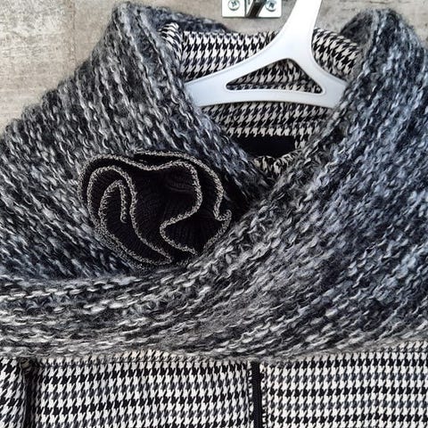 Huivissa puolet on sinisenharmaan (tai harmaansinisen)-valkoraidallista, toinen puoli kelta-valkoista siksak-kuviota. Unelmankevyt!