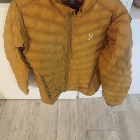Miesten sininen Haglöfs takki. Huppu, vetoketjulliset taskut. Takki täysin ehjä ja vetoketjut toimii.
