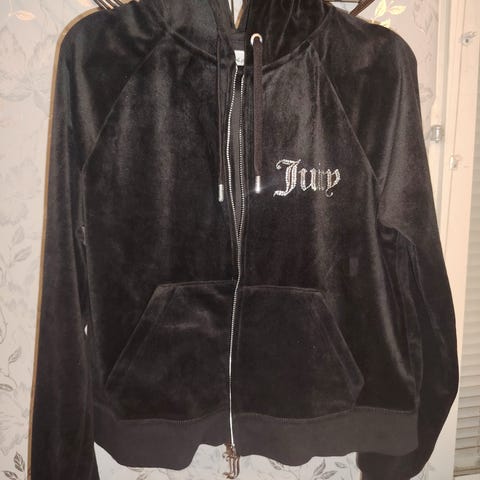 Pehmeää materiaalia. Kauttaaltaan painettu teksti ja strasseilla Juicy.