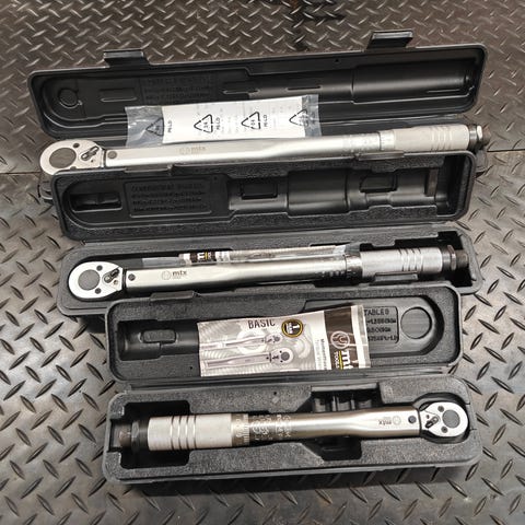 Motonetin pari kertaa käytössä ollut momenttiavain (kuvassa alin). Momentti nollattu aina käytön jälkeen.