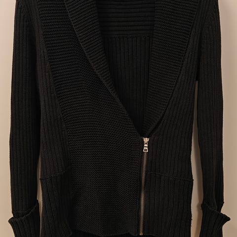 Musta, pehmeä neuletakki CalvinKlein-merkkiä. Koko M. Lähes käyttämätön. Kauniin pienet napit, perusmallinen neule. Materiaali 80% rayon, 20%nylon.