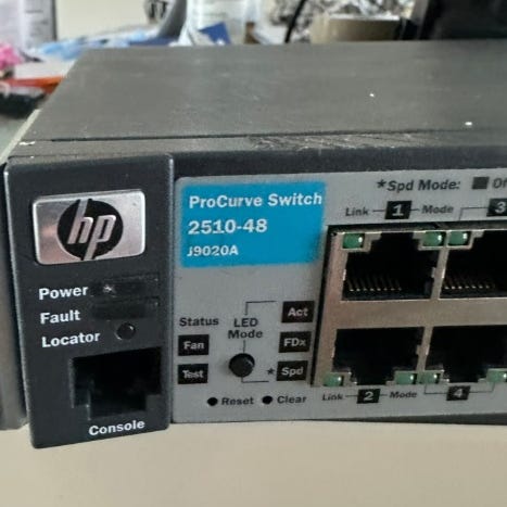 HP ProCurve kytkin, tarkoitettu tietoverkkojen hallintaan ja laajentamiseen. Laite tarjoaa useita portteja verkkoliitäntöjä varten.