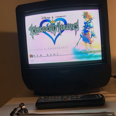 "Vintage" kannettava minitelevisio Denver DTV-570 / mustavalkoinen mini-CRT-televisio radiolla / retro 90-luvun keräilylaite