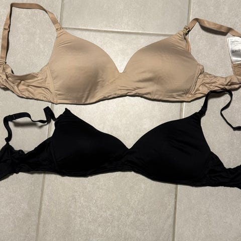 Kahdet Lindex imetysliivit. Mustat koko 85D, melko vähän käytetyt mutta nukkaantuneet pesussa. Valkoiset koko 85C, hieman enemmän käytetyt ja pesussa harmaantuneet.