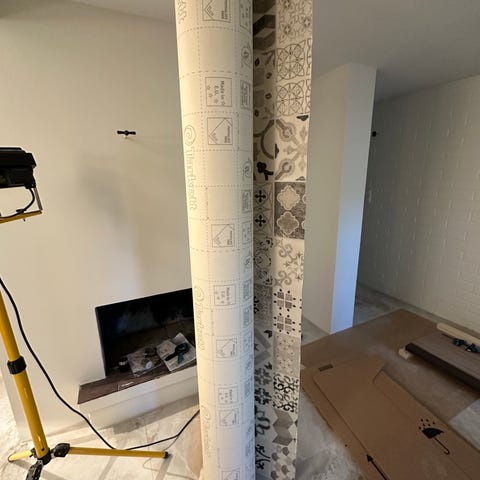 2x vaalea täysi rulla, harmaasta vähän jäljellä ja yksi vaalea josta yhden eteisen verran käytetty. Lisäksi nuo telineet mukaan, jotka jostain vanhasta myymälästä alkujaan.