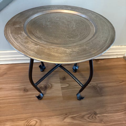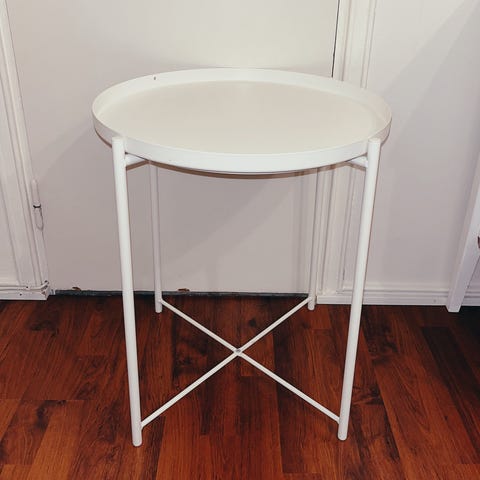 Ikean GLADOM tarjotinpöytä. Tumma harmaanbeige sävy. 45 x 53 cm.