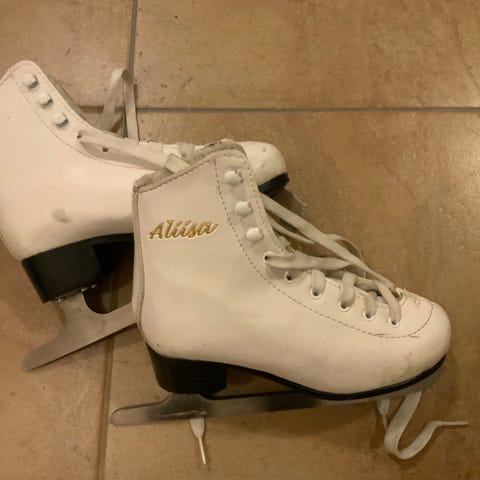Alissa luistimet, lasten koko 34. Luistimet ovat valkoiset, sisällä karvavuori. Sisämitta 22 cm.
