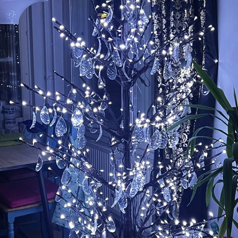 Haluisitko tänä jouluna kotiisi hieman erilaisen kuusen? Puu on lumihuurteinen ja siinä on valmiina pieni paristoilla toimiva valosarja. Puu on täysin uusi. Toimii erinomaisesti myös tunnelmaa tuovana pöytä-tailattiavalaisimena.