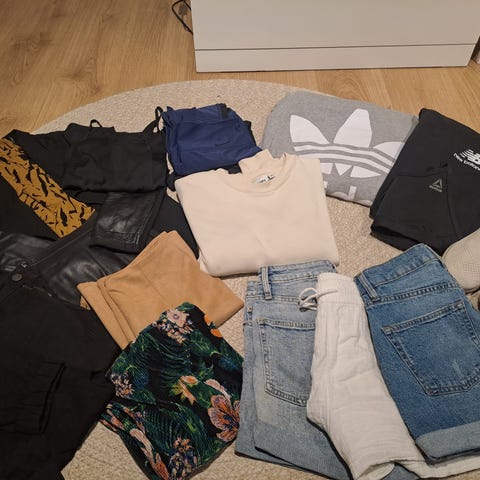 Perfekti Jeans 38, neuleita, bikinihame M CalvinKlein toppi, urheiluvaatteita jne. Berskhan farkut käyttämättömät, olikin liian isot mulle, nämä voi ostaa myös erikseen. Nouto Iin Alarannalta/Kuopiosta sovitusti tai postitus.