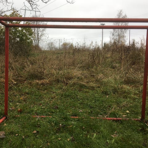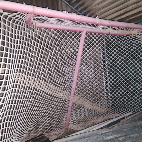 Kuvanmukainen jääkiekkomaali punainen, ehjä verkko.
