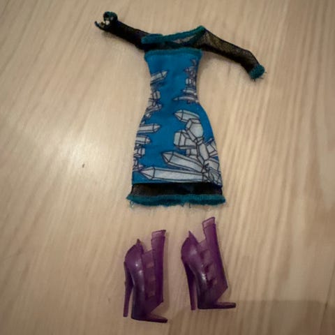 Monster High asusteet. Rebecca Steam mekko ja Clawdeen Wolf kengät. Yhdessä ja yhteishinta.