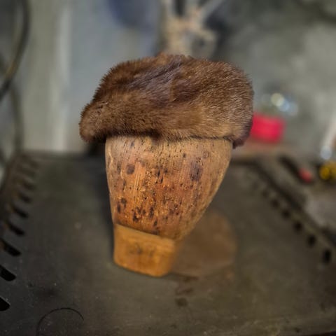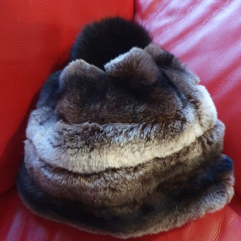 Aito muhkea hyväkuntoinen turkishattu. Vuori vähän yhdestä kohtaa repeytynyt eikä haittaa käyttöä mitenkään. Kunto siisti ja vähän pidetty ja oikein säilytetty.