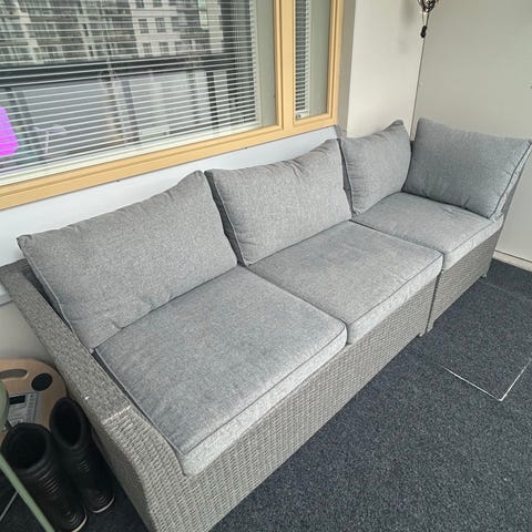 Myydään muuton alta hyväkuntoinen sohva, joka ollut säältä suojassa lasitetulla parvekkeella. Puolisuutta pystyy vaihtamaan. Vain nouto.